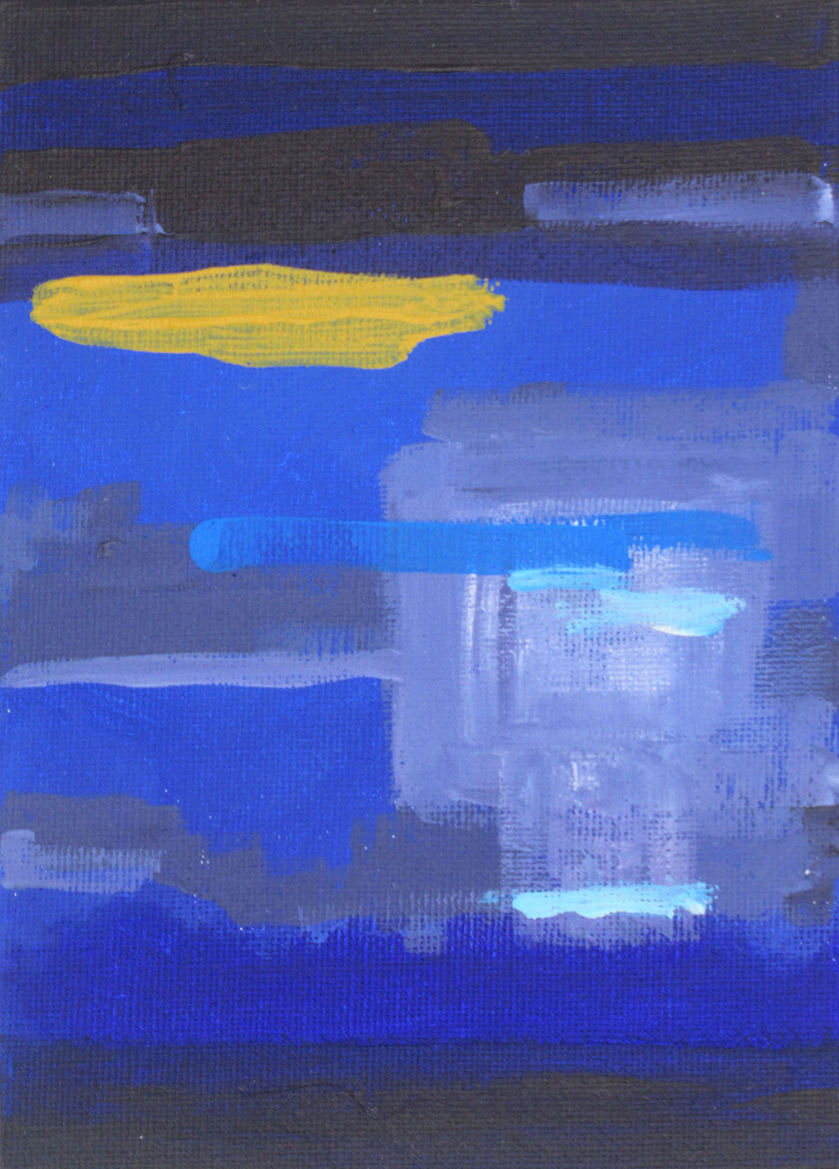 Blue has a rich history in art, culture, music and language. It’s a prominent colour in my latest paintings too. Something which started way before the lockdown but has become important during the adaptations and restrictions caused by Covid-19. The process is a response to a specific location, time of day, and nurturing well being.