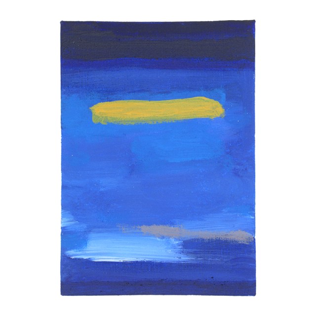 Blue has a rich history in art, culture, music and language. It’s a prominent colour in my latest paintings too. Something which started way before the lockdown but has become important during the adaptations and restrictions caused by Covid-19. The process is a response to a specific location, time of day, and of nurturing well being.